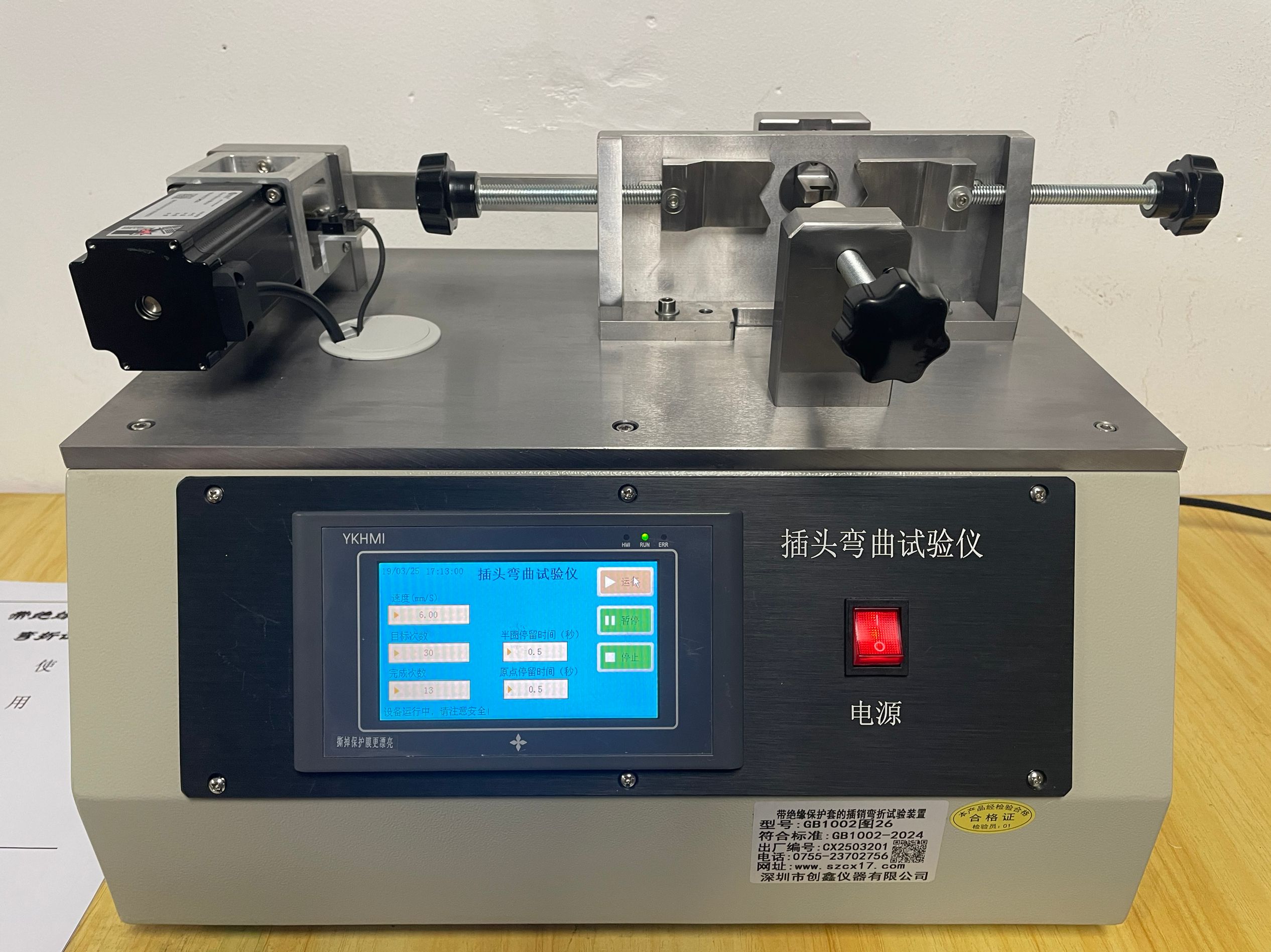 • 帶絕緣層插頭的插銷彎折試驗裝置